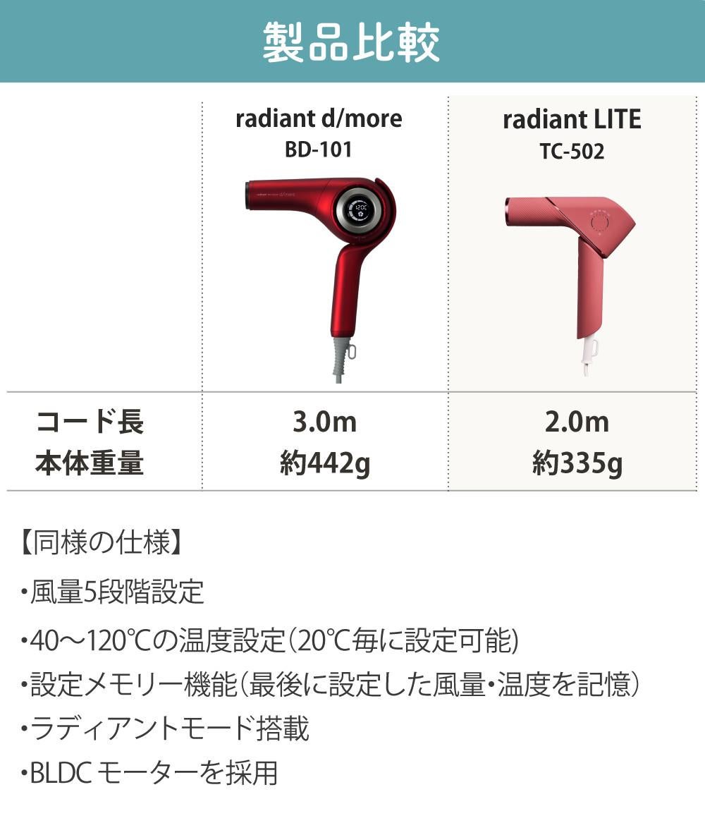 他の画像を見る 【正規販売店】ラディアント LITE TC-502 ヘアドライヤー ヘアケア プレゼントにもおすすめ 白 赤 温風 冷風 切り替え機能 ヘアケア 頭皮ケア ラディアント ライト ドライヤー TC-502 ホワイト レッド 0359 マイクロファイバー ヘアドライタオル 2点セット 販売価格 ¥ 29,900 税込 カートに入れる お気に入りに登録する (0件)