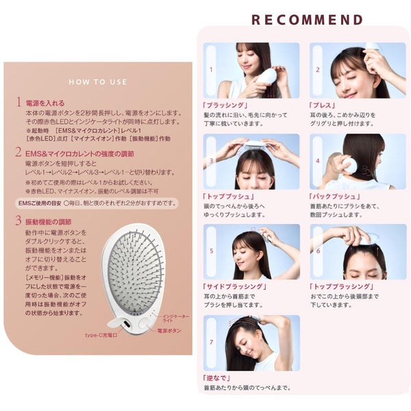 EMS マイクロカレント、クッションブラシ、赤色LED、マイナスイオン、バイブレーションなど