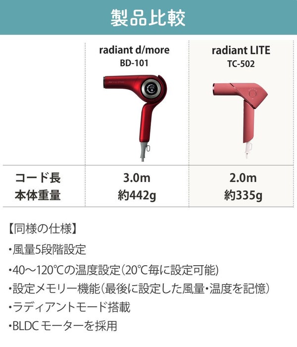 ▼ラディアント ライト ヘアドライヤー TC-502(カラー選択)