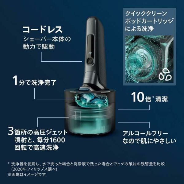 わずか1分でパワフルなクリーニングポッドがシェーバーをしっかり洗浄、潤滑するため、理想的な状態で長期間性能を発揮することができます。