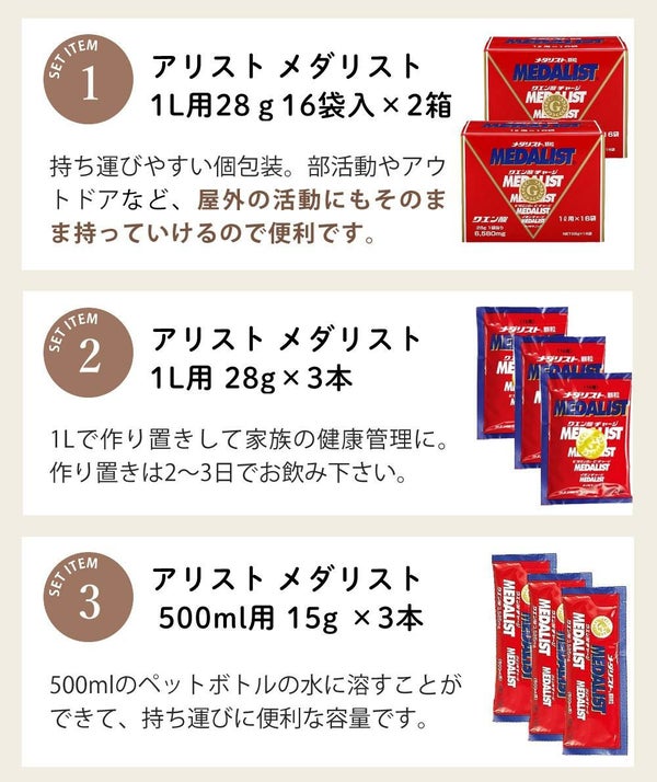 | 2)アリスト メダリスト 1L用 28g ×3本 |