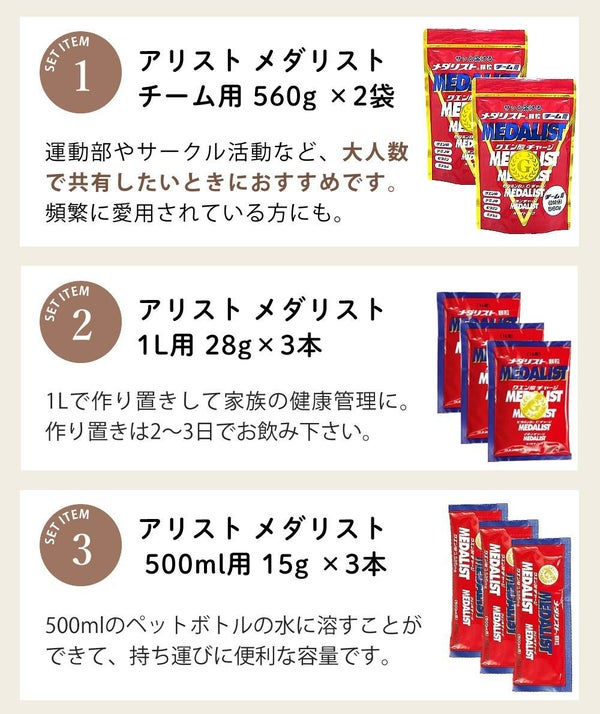 | 2)アリスト メダリスト 1L用 28g ×3本 |