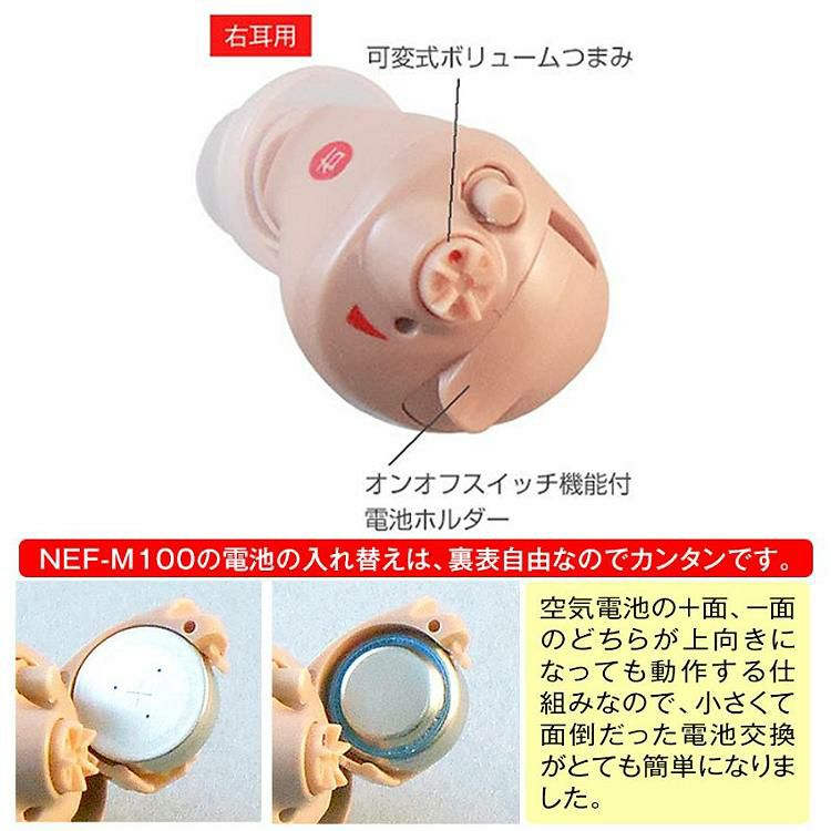 他の画像を見る ニコン NEF-M100 耳穴型 デジタル 補聴器 軽度~中等度難聴用 右耳用 日本製 集音器 増幅器 ニコン・エシロール NEF-M100S 非課税 補聴器両耳セット 販売価格 ¥ 43,800 税込 カートに入れる お気に入りに登録する (0件)