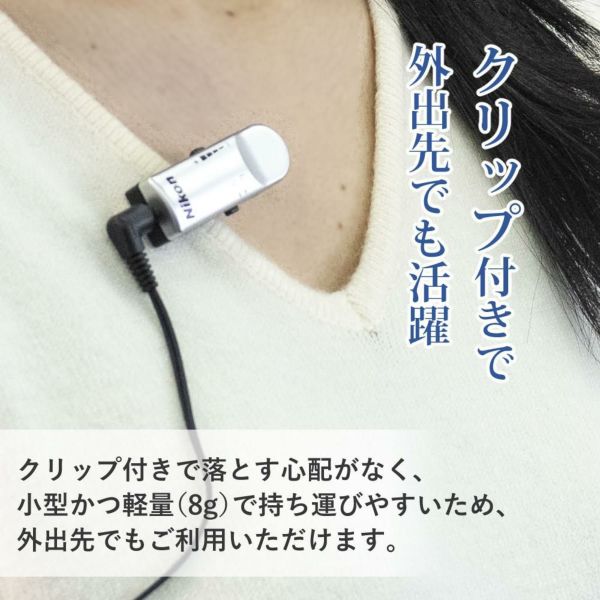 どこでも簡単に装着できる!充電式のクリップ付き集音器