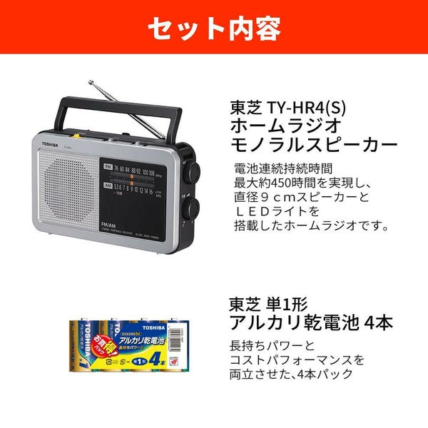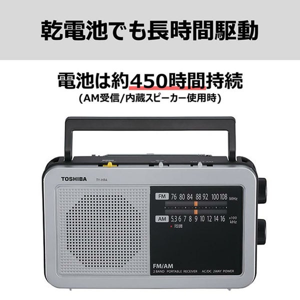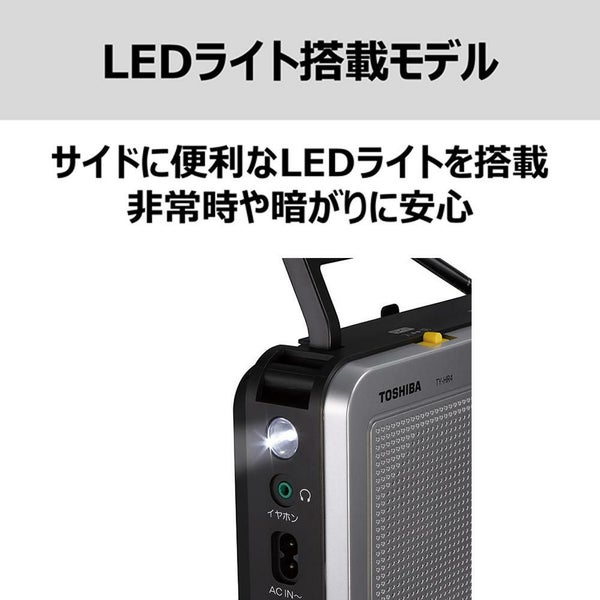 電池連続持続時間最大約450時間(東芝アルカリ乾電池を使用して内蔵スピーカーでAM放送受信の場合)を実現し、直径9cmスピーカーとLEDライトを搭載したホームラジオです。