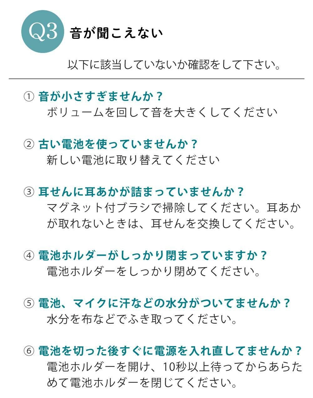 本体、お試し用空気電池1個、耳せん(S・M・L×各1個)、携帯用ケース、掃除用ブラシ、取扱説明書、保証書 |