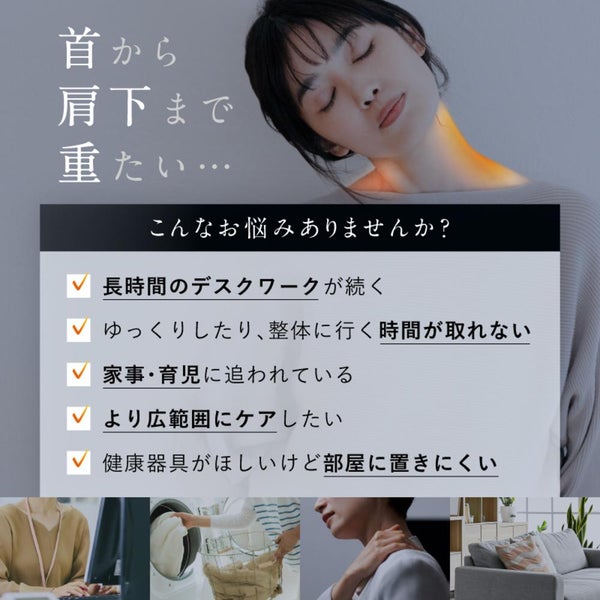 NIPLUX NECK RELAX 1S は、温熱とEMSで首元からじんわりほぐしてく。3段階の温度調節でその日の気分に合わせたお好みの温度でご利用できます。