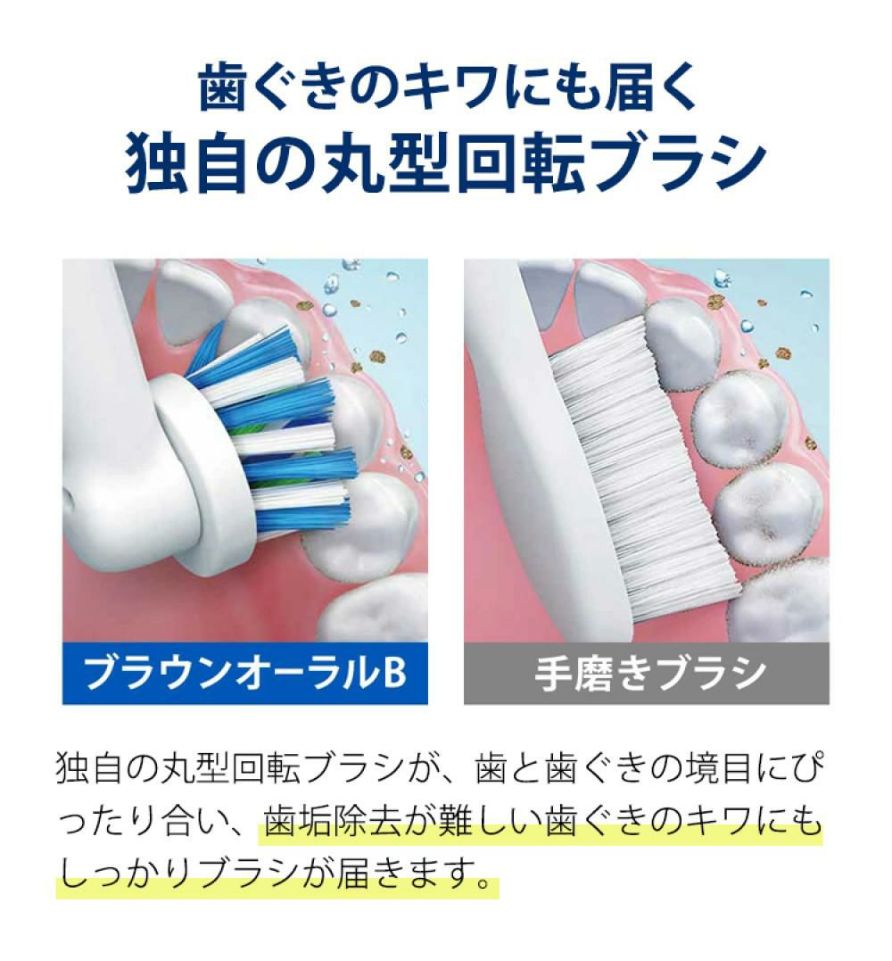 ブラウンオーラルBの特長は独自の「丸型回転ブラシ」。