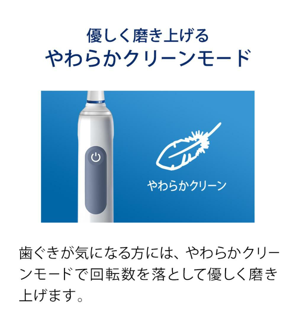 歯ぐきが気になる方には回転数を落として優しく磨き上げるやわらかクリーンモード。