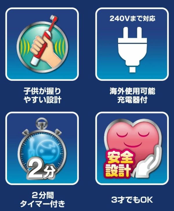 【付属品】本体、子供用やわらかめブラシ、充電器(海外仕様可能240Vまで)