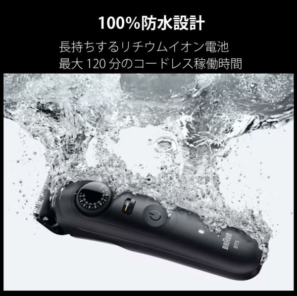 長持ちするリチウムイオン バッテリーと最大 120分のコードレス稼働時間を備えた、 100% 防水設計トリマーです。
