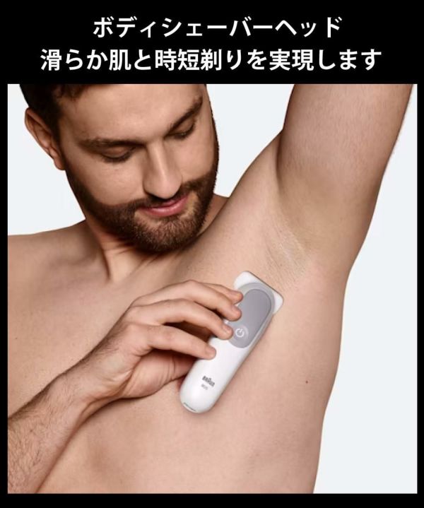 ムダ毛処理 に最適な ブラウン ボディシェーバー は、 肌にやさしい 刃 と アタッチメント付き で 手入れも快適 防水仕様 でお風呂 での使用も可
