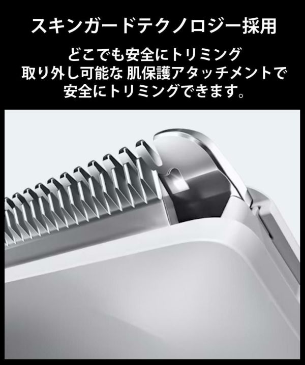 トリマーには取り外し可能な保護肌アッタッチ面とが付いており、肌が刃に直接触れるのを防ぎます。