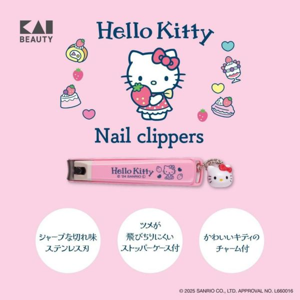 シャープな切れ味 かわいいチャーム付き! さびにくく切れ味も優れた、日本製のツメキリです。 ツメが飛び散りにくいストッパーケース付き。 テコ部分には、かわいいハローキティのデザイン入りで、立体チャーム付きです。