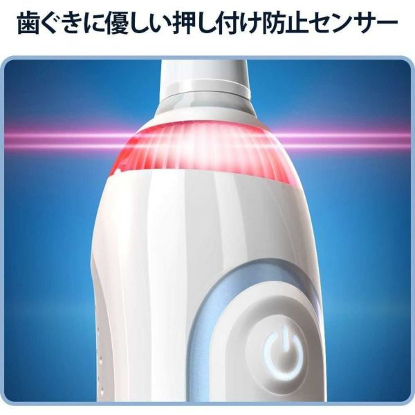 ブラシ圧が強いと押し付け防止センサーが光ってお知らせし、過圧ストッパーが自動的に上下運動をストップ。さらに過圧コントローラーがソフトな振動のモード(やわらかクリーンモード)に自動切り替え