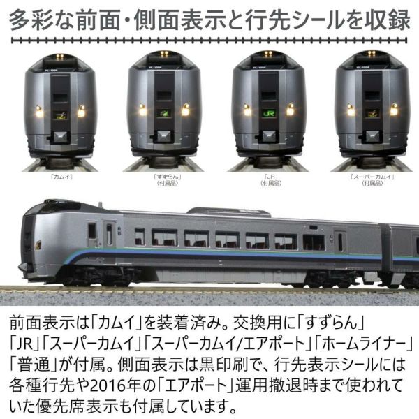 【付属品】交換用前面表示(「すずらん」「JR」「スーパーカムイ」「スーパーカムイ/エアポート」「ホームライナー」「普通」)×各2、行先表示シール