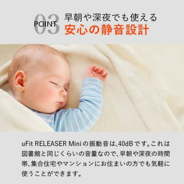 | 梱包内容 | uFit RELEASER Mini本体、アタッチメント4種類、ユーザーマニュアル、収納ケース、Type-C充電ケーブル |