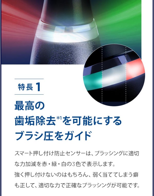 プレミアム音波水流ブラシと比べて、約1.5倍歯ぐきのキワの歯垢を除去 水に溶けにくい歯垢を物理的にこすり取る。
