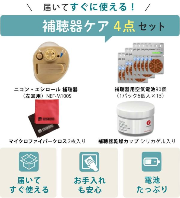 【付属品】本体、空気電池1個、耳せん(S・M・L×各1個)、携帯用ケース、掃除用ブラシ、取扱説明書、保証書 |