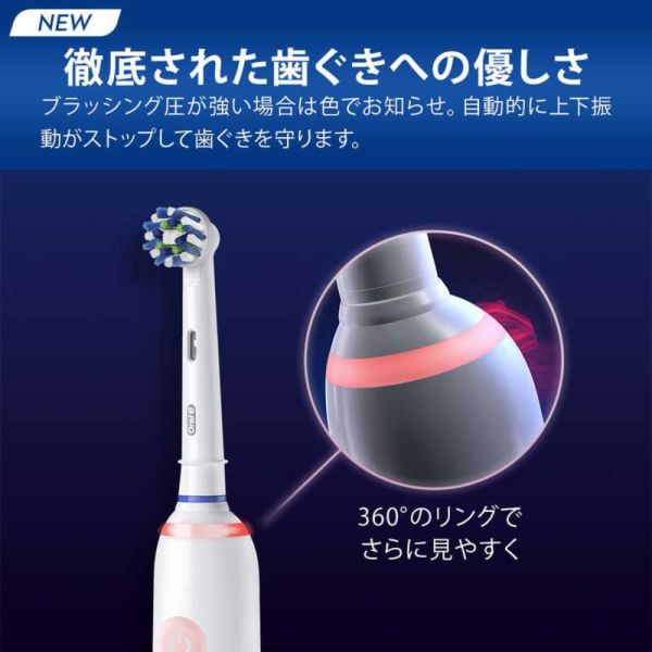●3D丸型回転技術による歯垢除去と押し付け防止センサー/過圧コントローラー・ストッパーで歯ぐきにやさしい