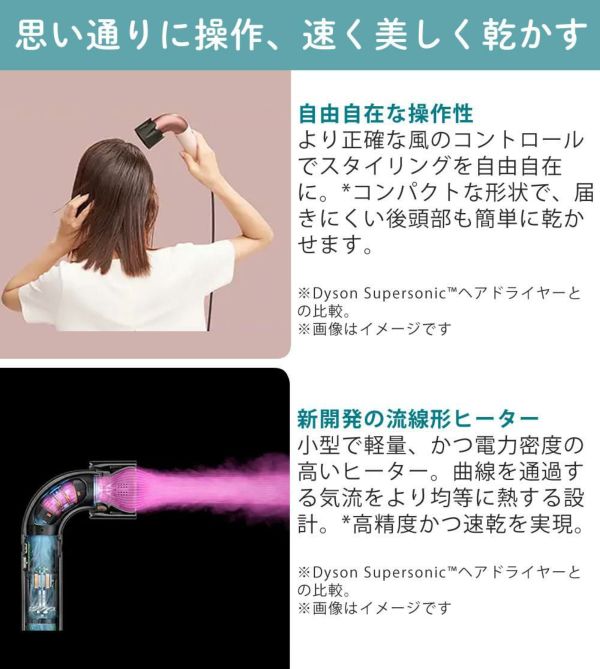 * Dyson Supersonic ヘアドライヤーとの比較。