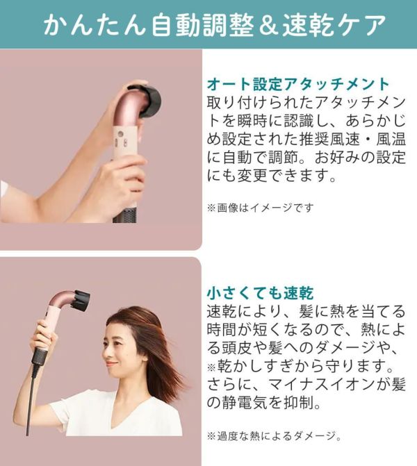 取り付けられたアタッチメントを瞬時に認識し、あらかじめ設定された推奨風速・風温に自動で調節。