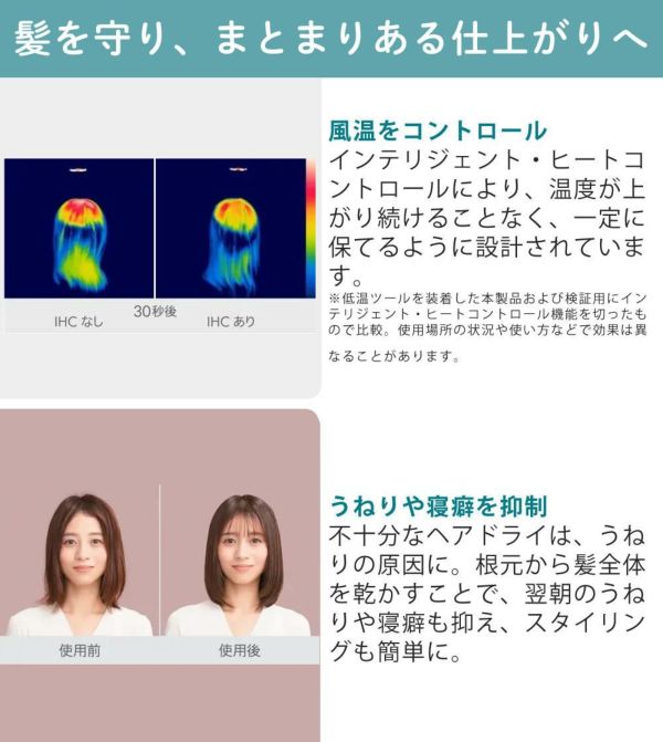 熱ダメージ軽減 や イオン効果 により 髪質改善 を実感できる 高性能ドライヤー です。