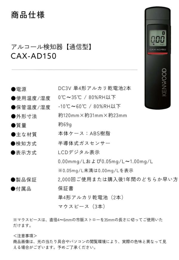 JVC KENWOOD (ケンウッド) アルコール検知器 CAX-AD150