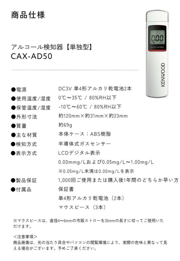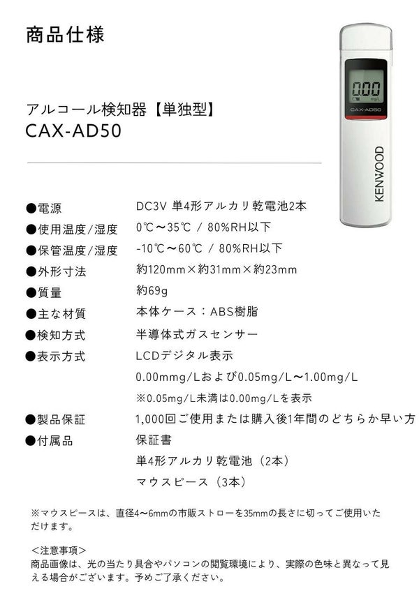 JVC KENWOOD (ケンウッド) アルコール検知器 CAX-AD50