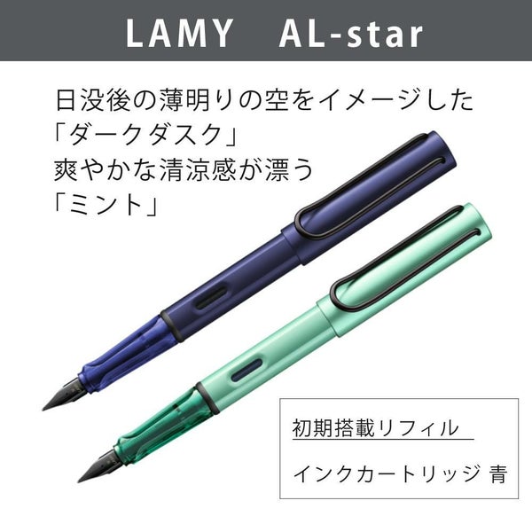 アルミニウムの素材使いがクールな印象のLAMY AL-starに、日没後の薄明りの空をイメージした「ダークダスク」と、