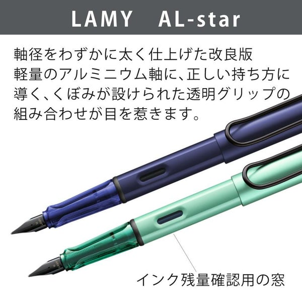 LAMY AL-starは、人気シリーズLAMY safariの主な特徴を引き継ぎながら、軸径をわずかに太く仕上げたアドバンスト版。