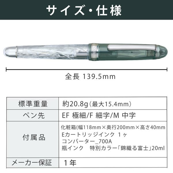 ●付属品にはコンバーターとカートリッジインク、特別調色インク「錦織る富士」