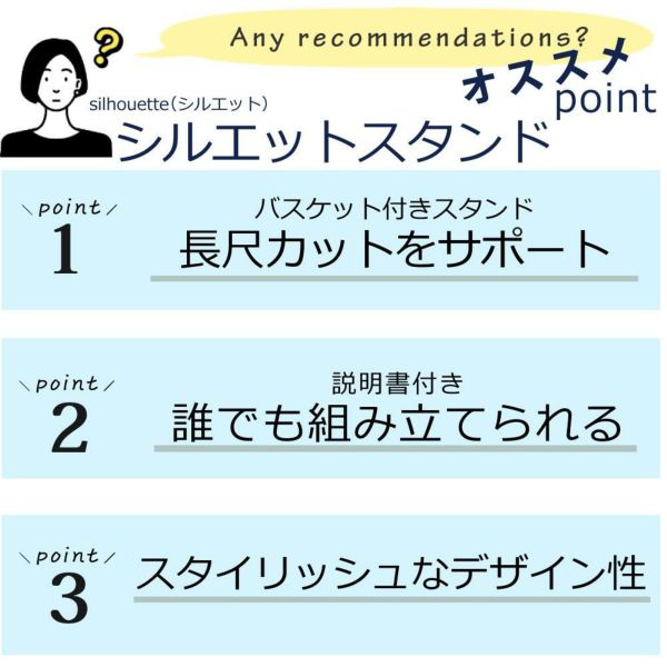 バスケット付きスタンドで長尺カットをサポート