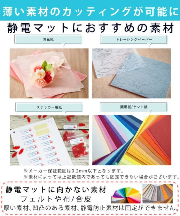 専用の静電マットを使用することで、和紙やトレーシングペーパー等の薄い素材のカットができるようになりました。
