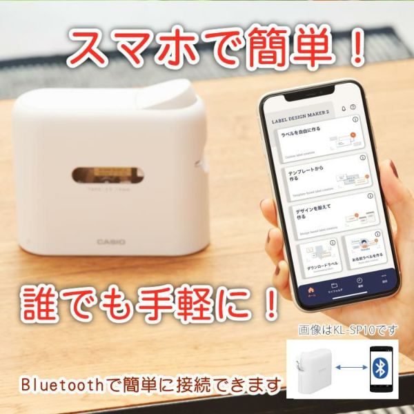 リビングやショップになじむデザインで、手に届くところに置いてすぐに使えるコンパクトなスマホ専用ラベルライターです。