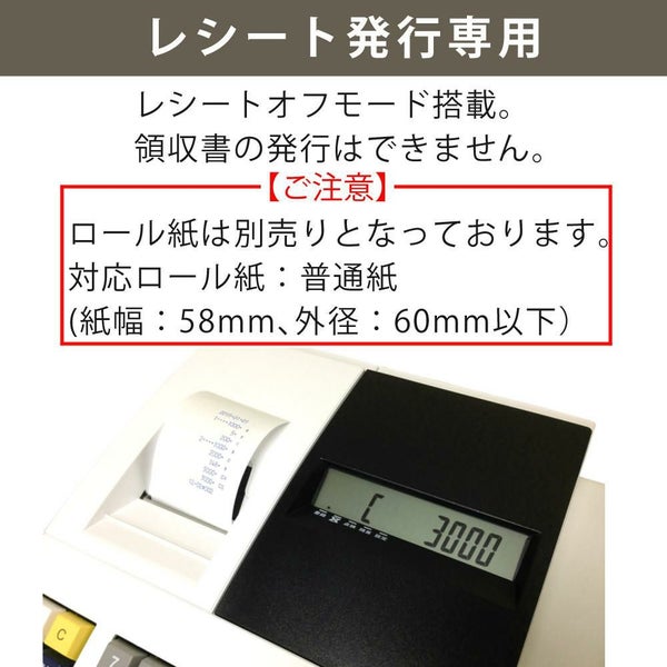 レシート発行専用、現金決済のみ対応。