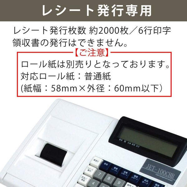 検索ワード:レジスター クローバー電子 CLOVER レシート発行のみ 現金支払い 説明書付 JET-100CHR 電池使用 電池付 単3 電池駆動 可能 ACアダプター