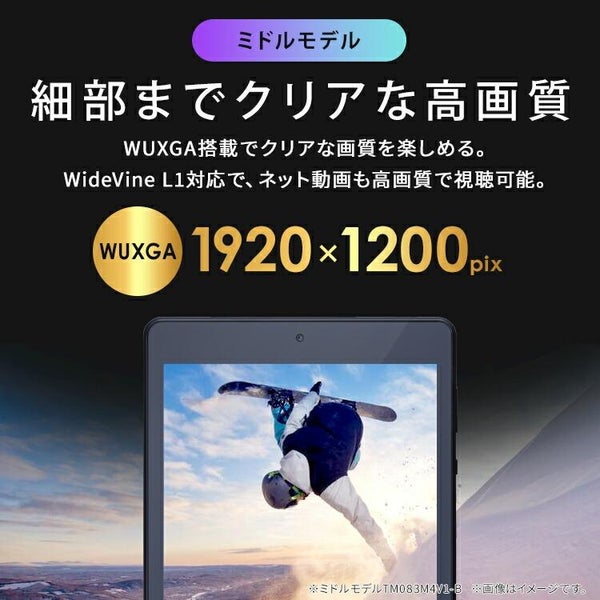 【解像度1200×1920の高画質ディスプレイ】8インチの小型サイズで、細部までクリアな画質を楽しめる「WUXGA 1200×1920」解像度に対応。WideVine L1対応なので、ネット動画やNetflix、Amazonプライムビデオも高画質で楽しむことができます。もちろんネットサーフィンや電子書籍も高画質でご覧いただけます。