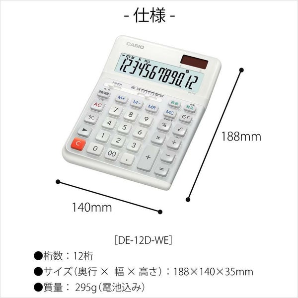 カシオ DE-12D-WE-N 人間工学電卓 右手用 デスクタイプ 12桁 (熨斗対応不可)
