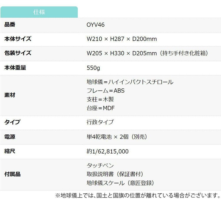 【付属品】タッチペン、地球儀スケール、取扱説明書(1年間保証書) |