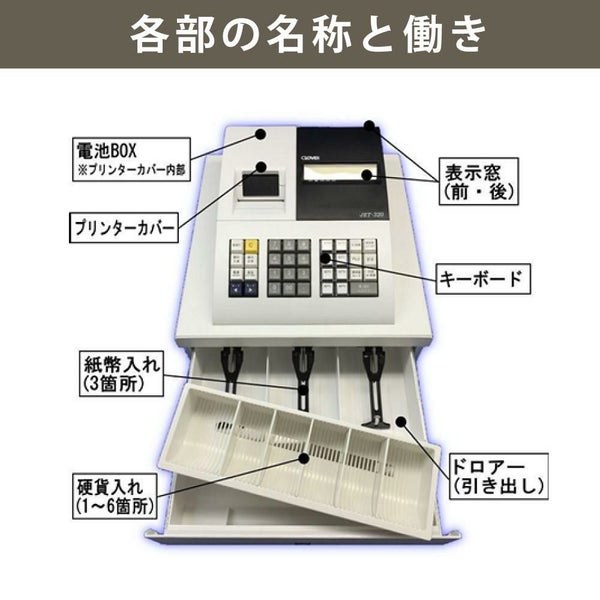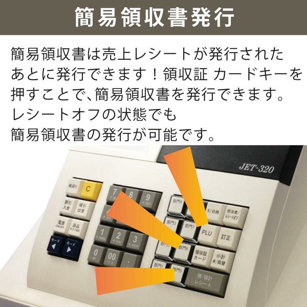 検索ワード:レジスター クローバー電子 CLOVER レシート発行のみ 現金支払い 説明書付 JET320