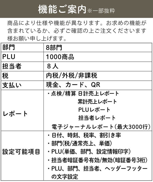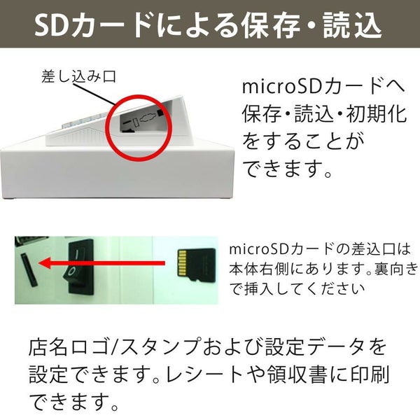 ・PCで設定可能:micro SD カード対応で店名/スタンプおよび設定データを設定できます。