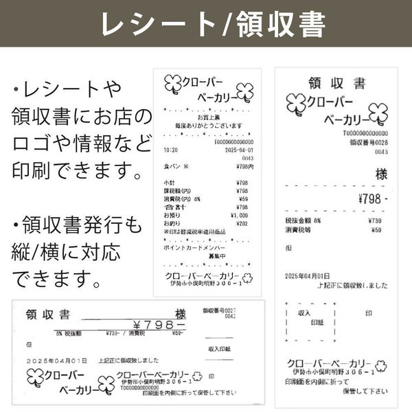 ・レシートや領収書にお店のロゴや情報などが印刷できます。