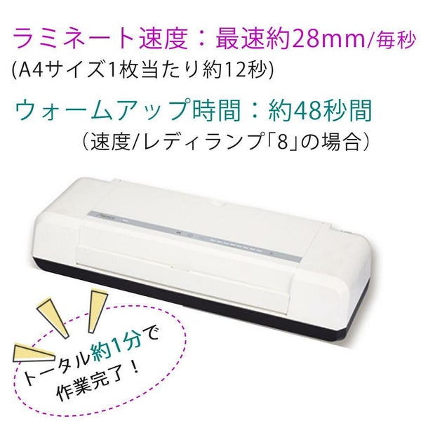 電源ONしてから仕上がりまで1分!速くて美しい仕上がりの高速ラミネーター