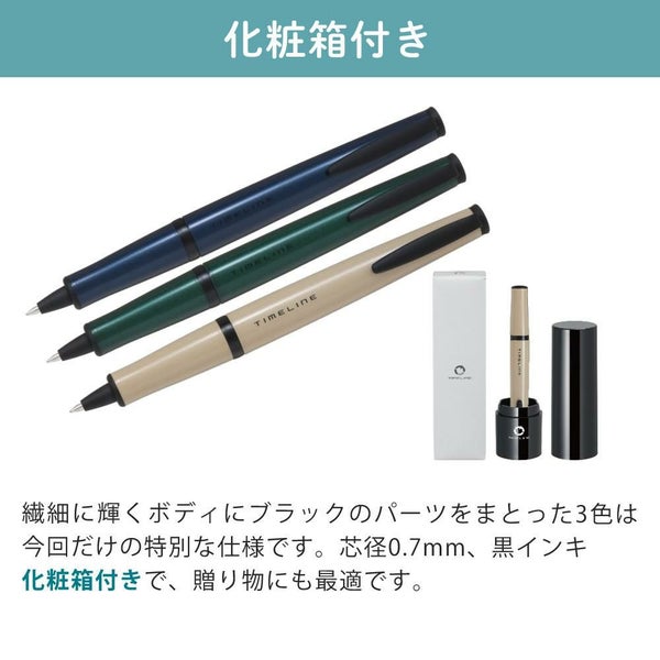 ミッドナイトブルー ディープフォレストグリーン サンドベージュ 0.7mm 黒インキ 化粧箱付