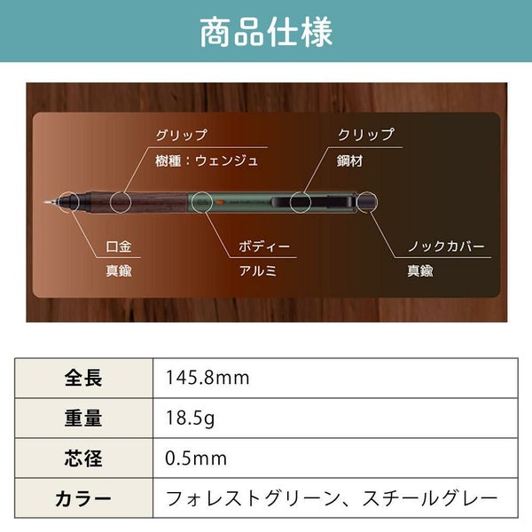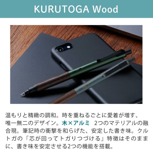 検索ワード:クルトガ KURUTOGA ウッド Wood シャープペン 0.5mm フォレストグリーン スチールグレー 木 ぬくもり 重厚感 贈り物