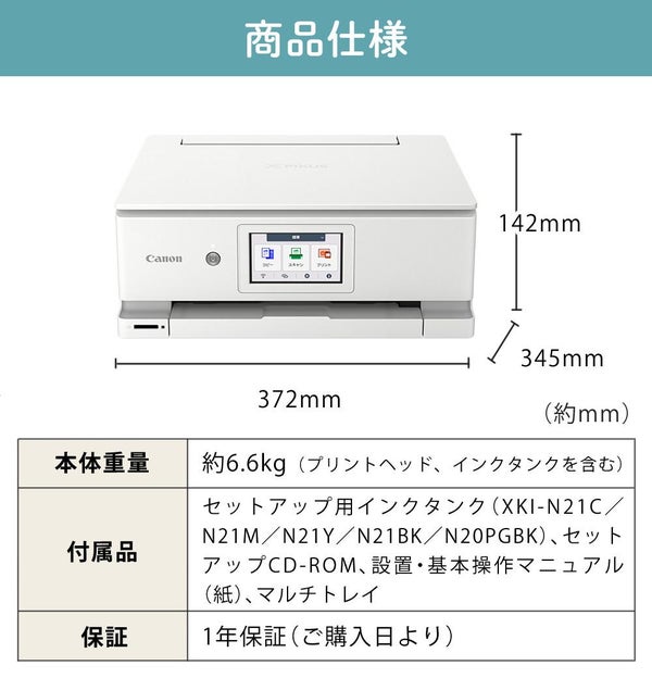 主な付属品 インクタンク/カートリッジ | セットアップ用インクタンク(XKI-N21C/N21M/N21Y/N21BK/N20PGBK)※11 |