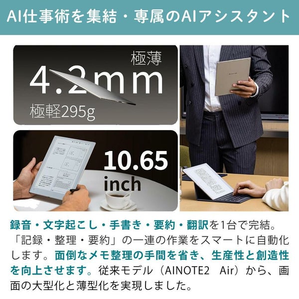 わずか4.2mm・295gの超薄型設計で、ビジネスでも学習でもスマートに使えるAIスマートノートです。
