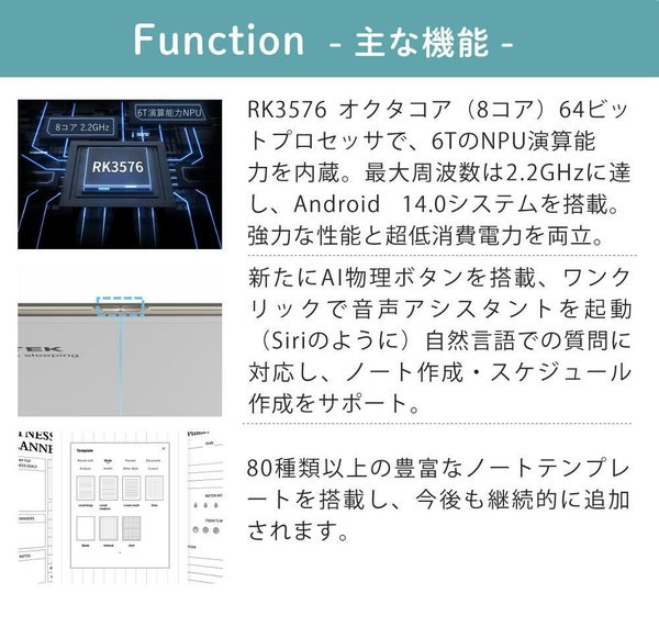 | 画面サイズ | 10.65インチ E-Ink 電子ペーパーディスプレイ |