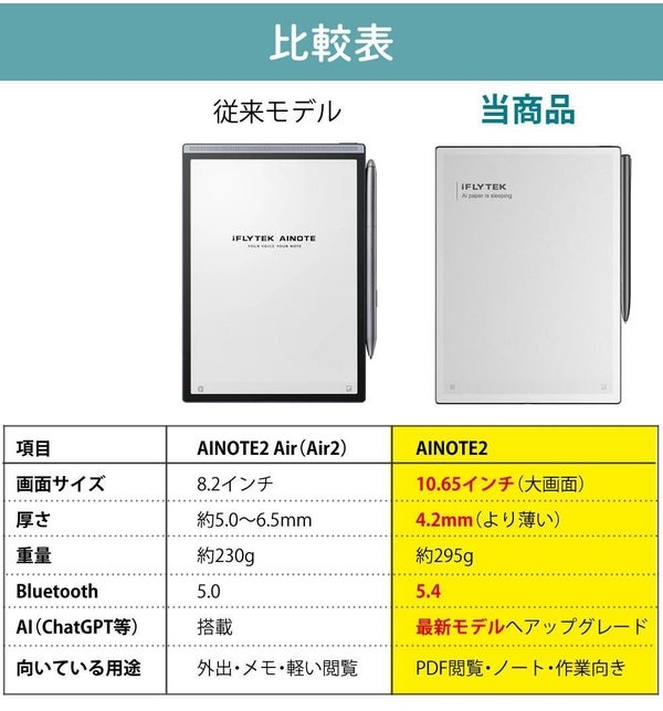 AINOTE2は、手書き・録音・要約・翻訳をこの1台で完結させる、真のAIスマートノートです。